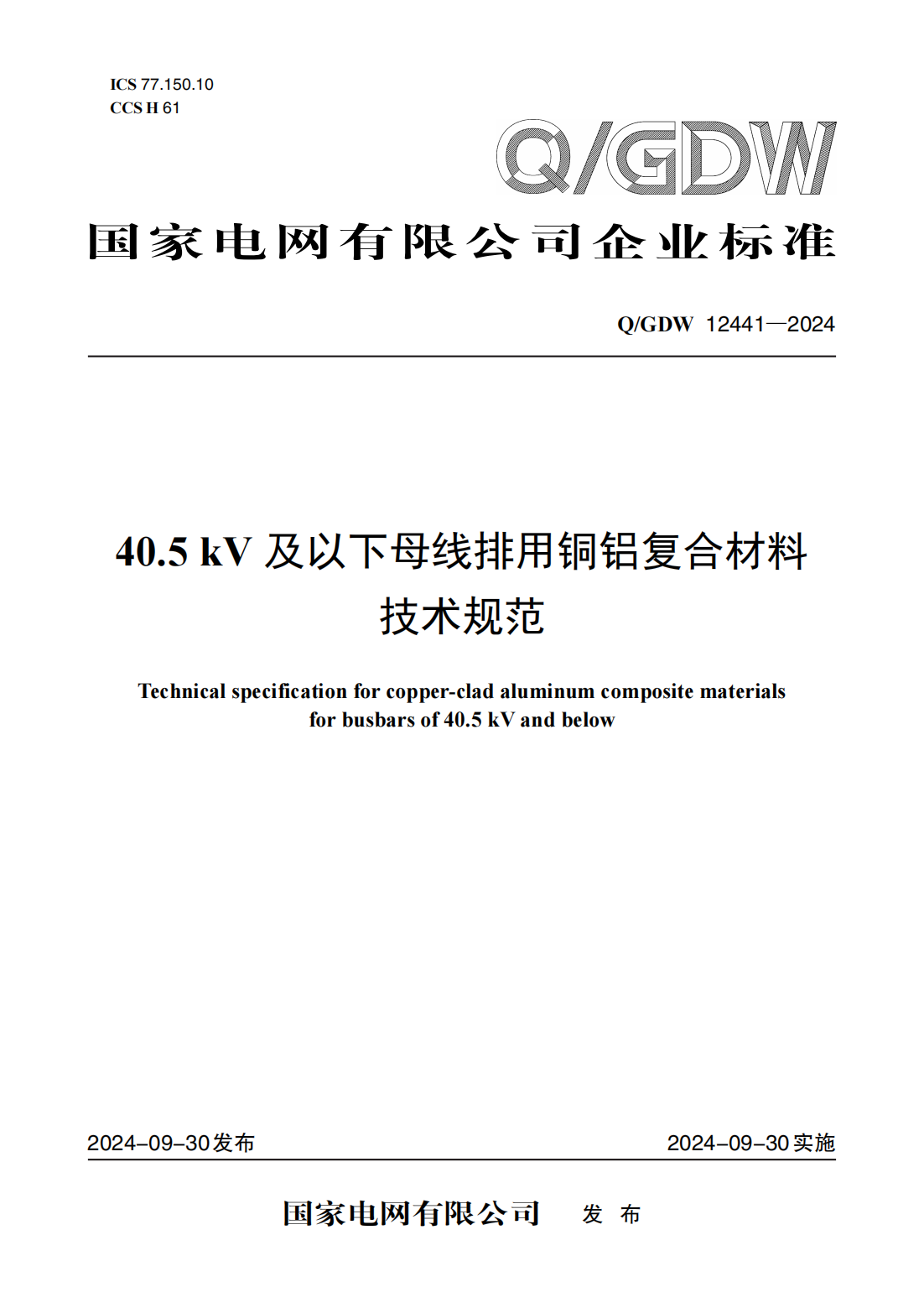 2023年4月,國(guó)網(wǎng)企標(biāo)《40.5kV及以下母線排用銅鋁復(fù)合材料技術(shù)規(guī)范》完成編制及報(bào)批,2024年10月25日企標(biāo)(見附件4- QGDW 12441-2024)正式實(shí)施。